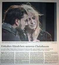 ... Mimi (Dorothee Koch) und Rodolfo (Rodrigo Trosino) geben ein zärtlich tastendes Liebespaar, mit harmonisch vibrierendem Gleichklang der Stimmen. Trosinos viriler Tenor vereint lyrischen Schmelz und starken Furor ...